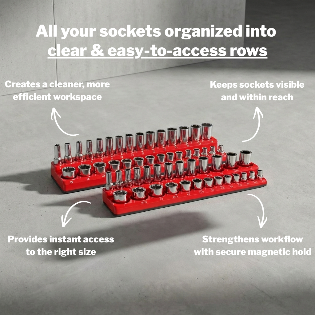 Our socket holder kit keeps your sockets organized, easy to see, and easy to grab. No more digging through drawers or loose piles in your toolbox.
